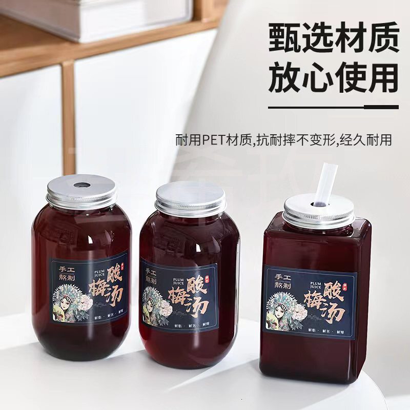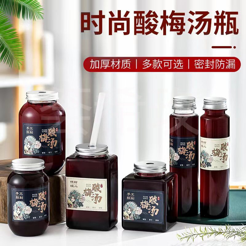 酸梅汤杯子一次性塑料饮品杯加厚pet酸梅汁瓶子外卖打包塑料瓶子