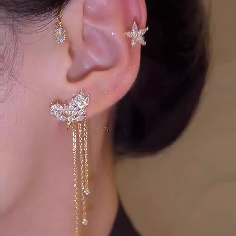 耳骨夹月溅耳夹无耳洞女耳挂耳环轻奢高级感小众方圆脸耳饰流苏