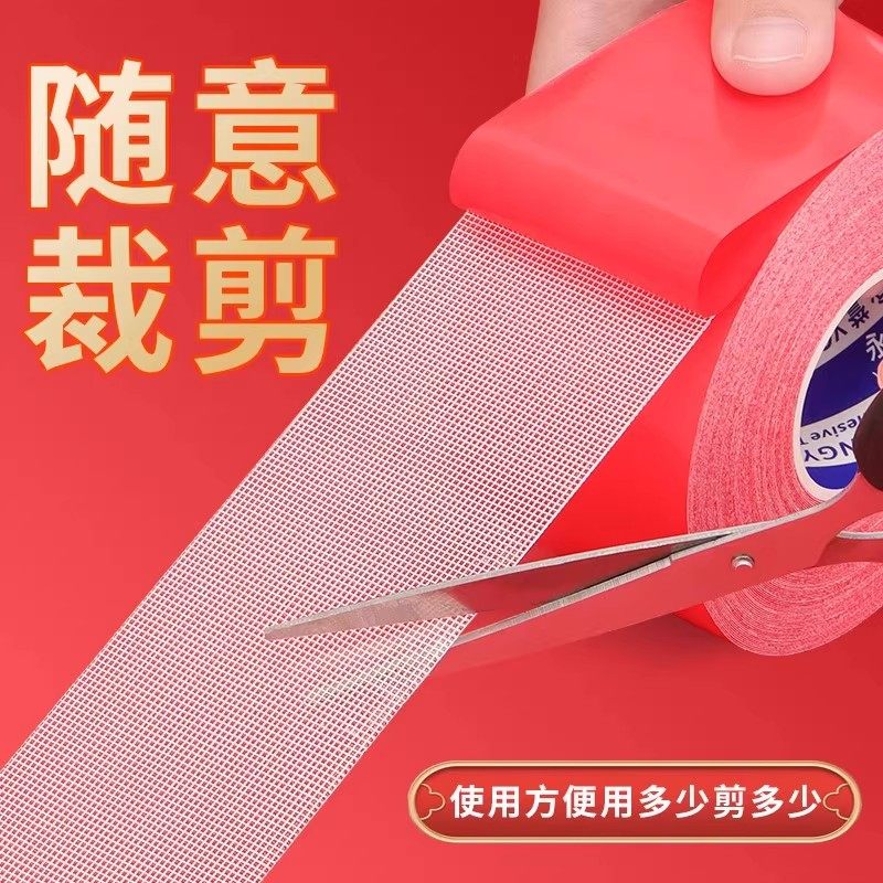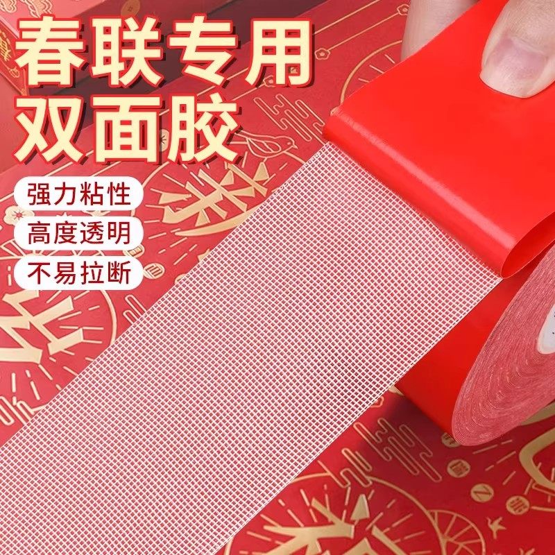 贴对联专用胶不留痕无痕胶网格双面胶高粘度门对强力固定贴春联防水不伤墙面布基胶带水泥瓷砖贴汽车结婚喜字