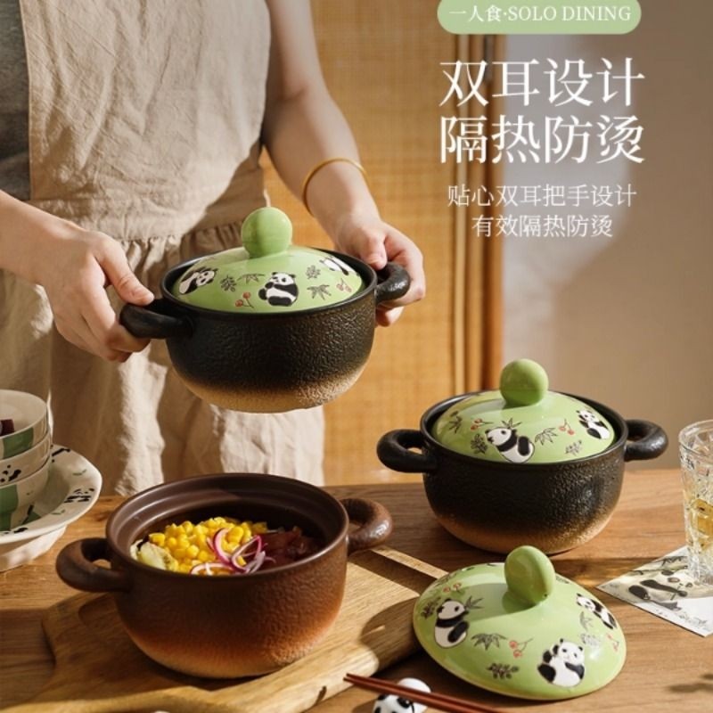 舍里熊猫砂锅家用一人食耐高温煲仔饭炖锅汤锅汤煲煮粥砂锅炖锅