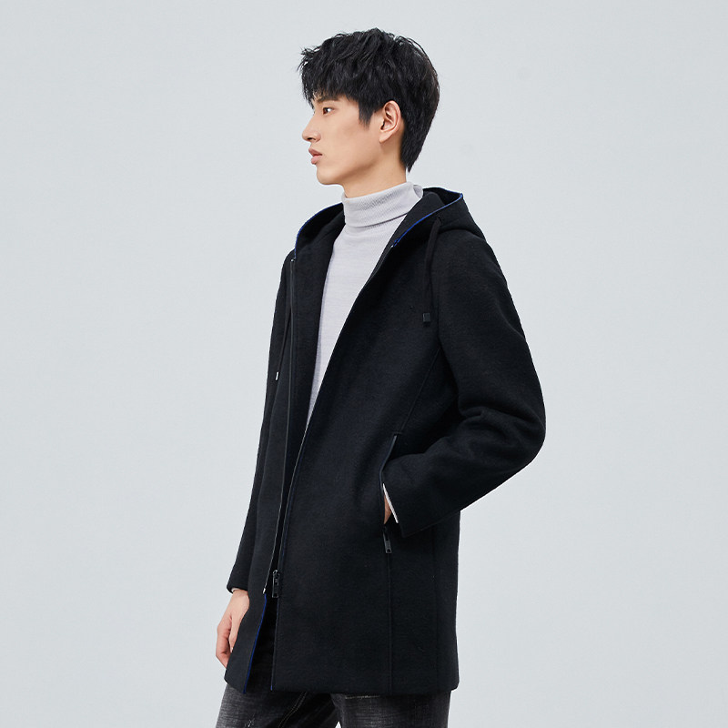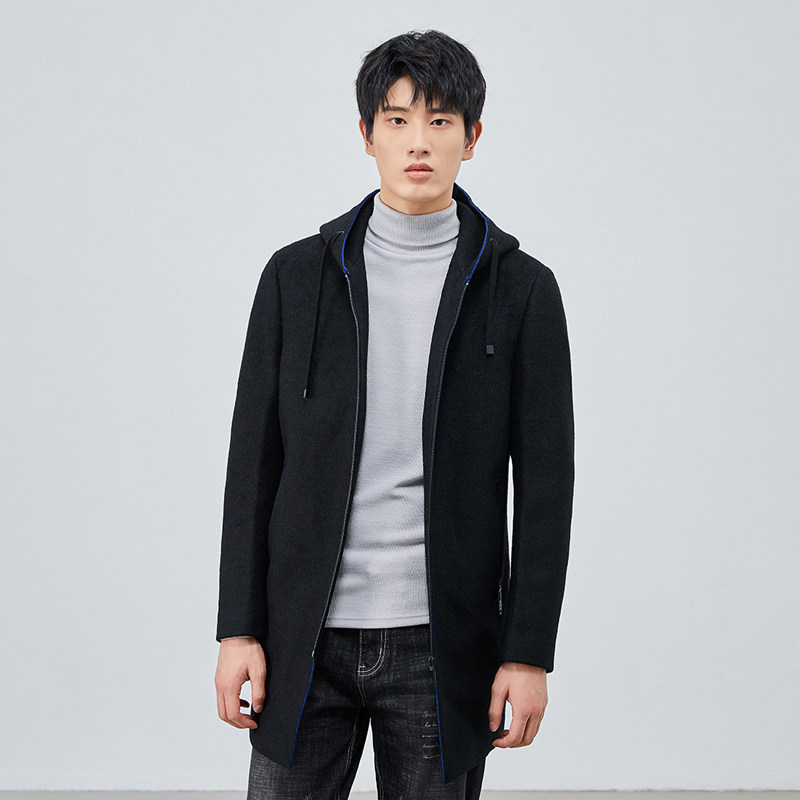 【100%绵羊毛】报喜鸟柴斯特斜纹中长款男大衣堑壕双面呢短款外套