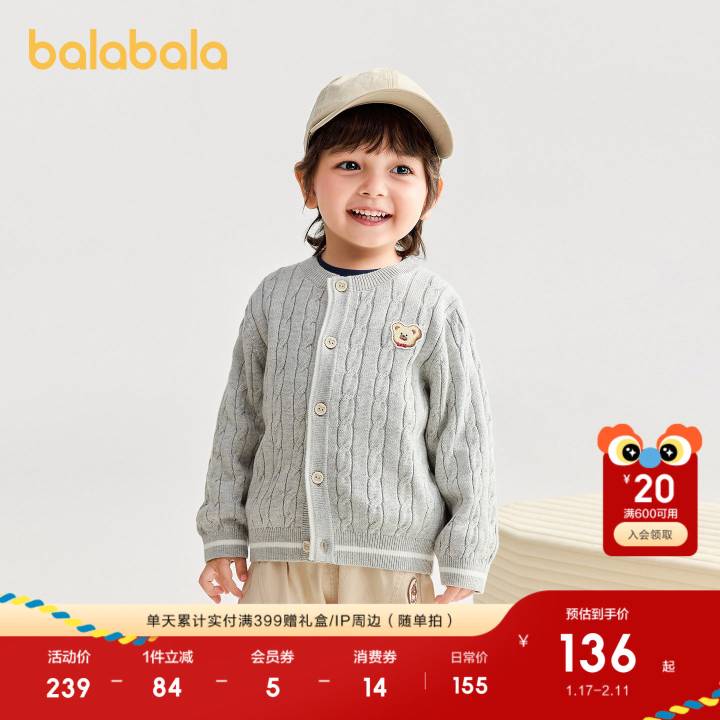 巴拉巴拉宝宝毛衣绞花开衫男童针织衫秋2025新款百搭