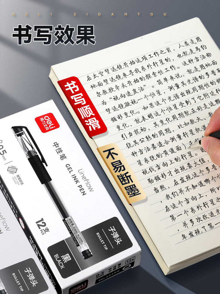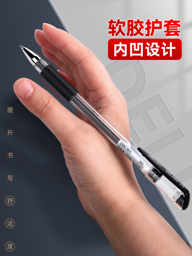 得力中性笔黑色0.5mm批发6600es水笔子弹头学生用文具圆珠笔考试专用黑笔签字笔蓝色教师红笔水性笔办公用品