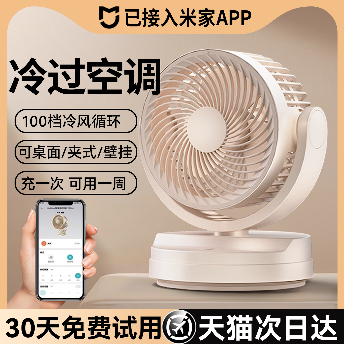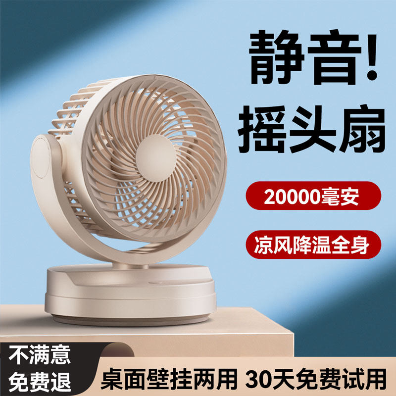 电风扇小型usb充电风扇办公室桌面摇头静音超长续航台式空气循环扇小电扇宿舍床上迷你台扇超大风力2025新款