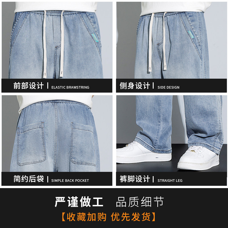 复古牛仔裤男宽松直筒松紧腰2025年春秋季新款潮牌阔腿男生长裤子