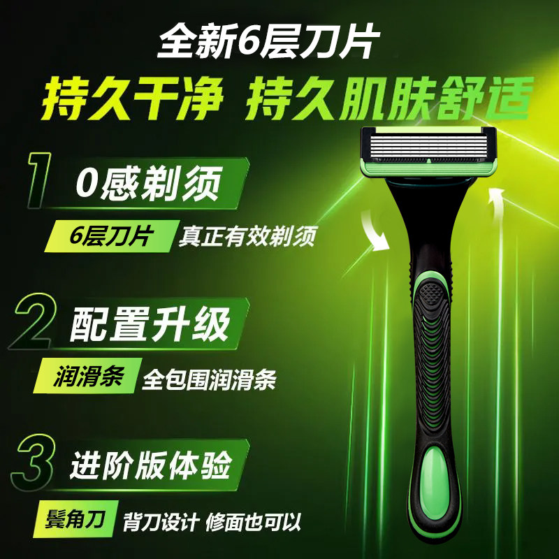 进口6层刀片剃须刀利亚刮胡刀手动刀片六层刀头男刮毛刮头胡子刀