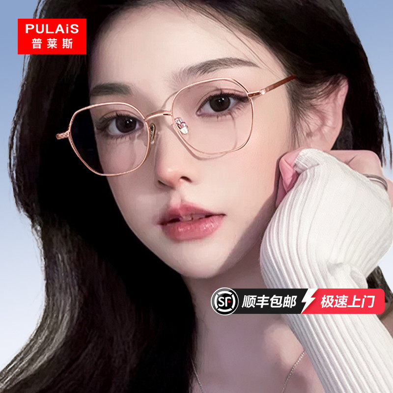 普莱斯素颜神器近视眼镜女可配度数大框显脸小腮红防蓝光辐射眼睛
