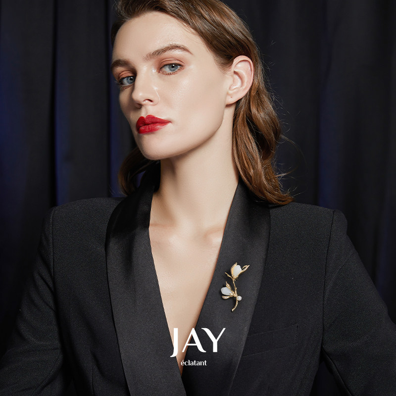 JAY金玉兰花胸针设计感小众胸花女高端别针秋冬西装配饰生日礼物