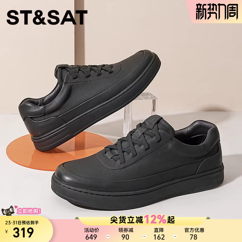 星期六真皮运动男士休闲皮鞋黑色德训鞋子男鞋软底板鞋小白鞋男款
