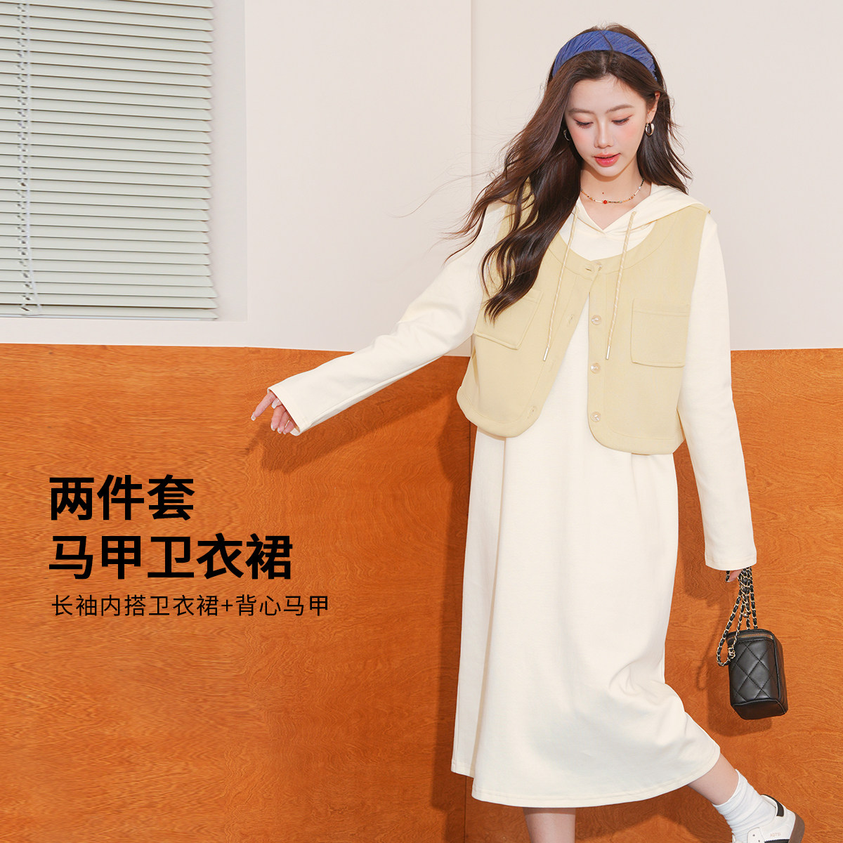 婧麒孕妇装卫衣裙套装2026新款时尚孕期马甲高级连帽连衣裙子春秋