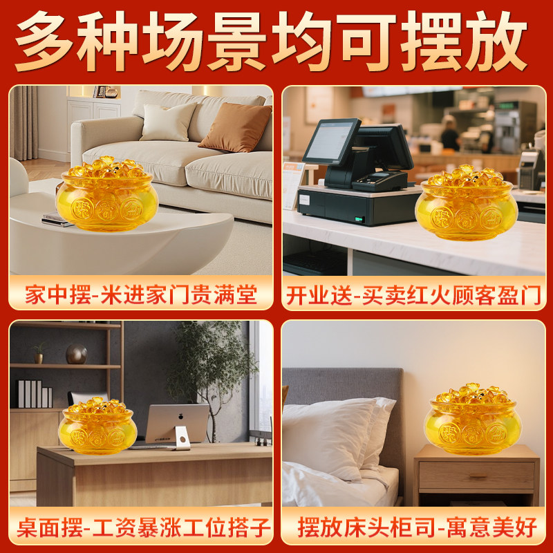 黄铜米缸聚财百福缸大号招财进宝聚宝盆创意手工礼物办公室小摆件