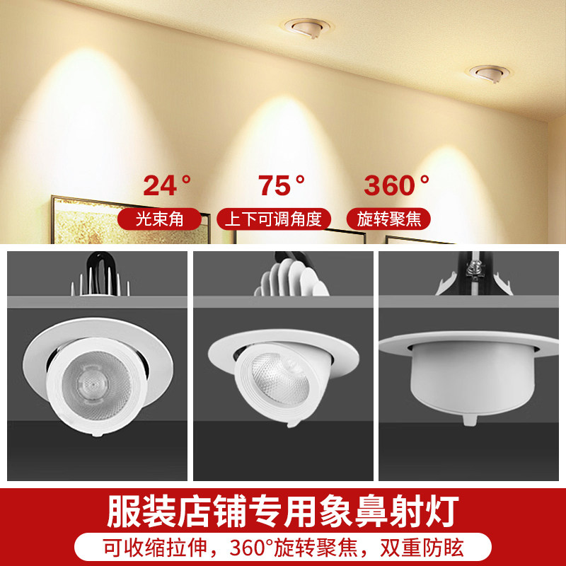 中山灯具防水嵌入式大功率射灯75mm象鼻灯家用可调角度商用筒灯