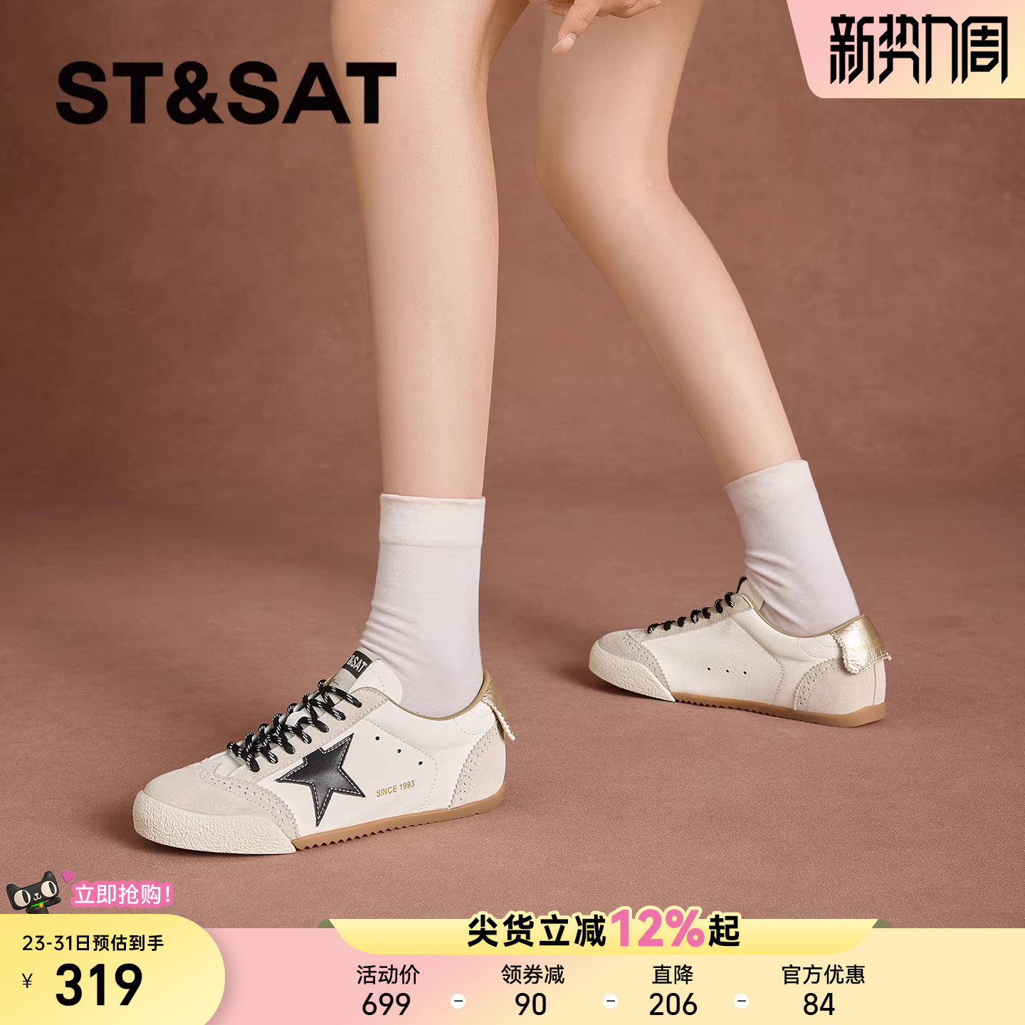 星期六2026早春星星鞋复古德训鞋百搭通勤透气休闲运动小白鞋女鞋