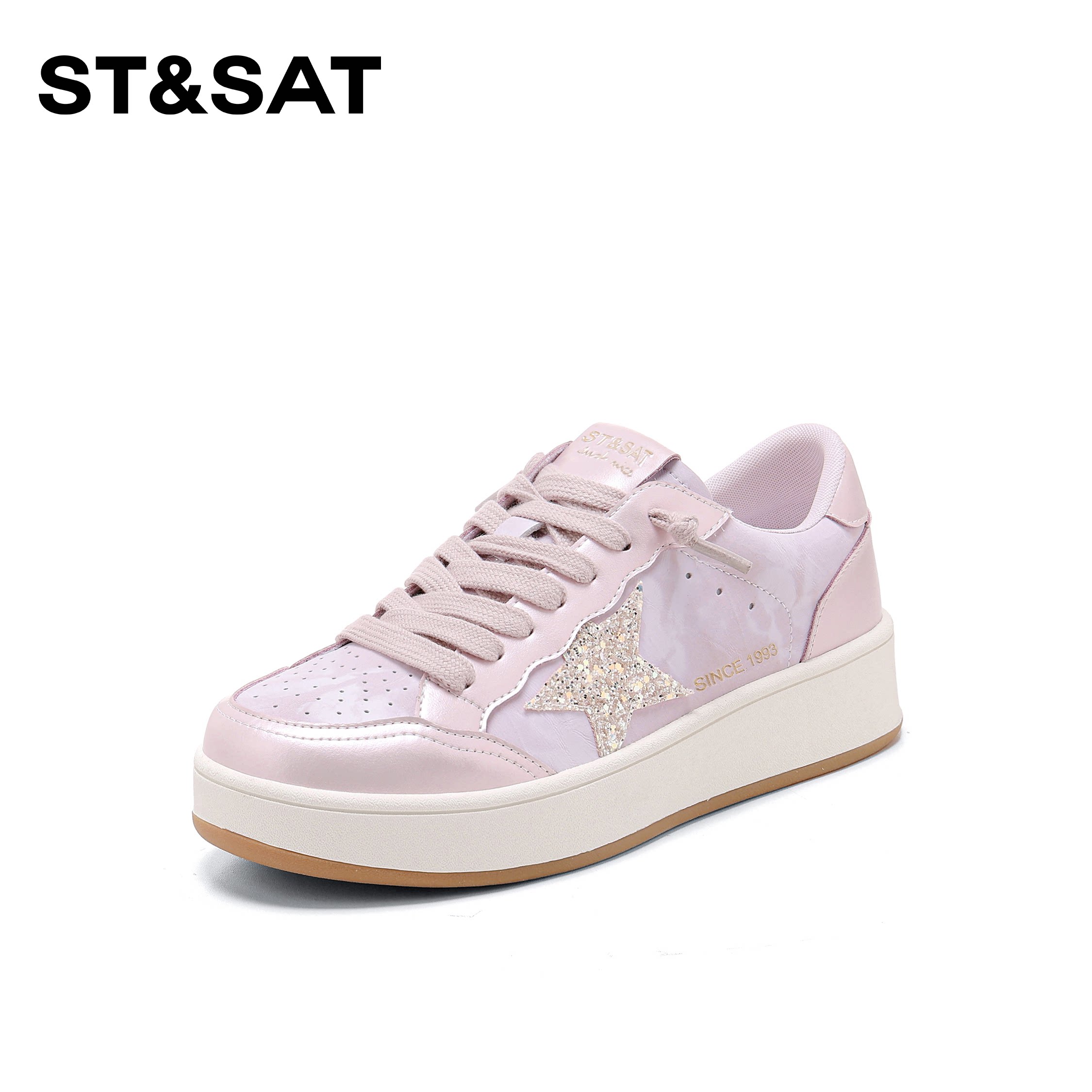 星期六休闲板鞋女2026新款春季星星亮钻皮面时尚百搭运动小白鞋子