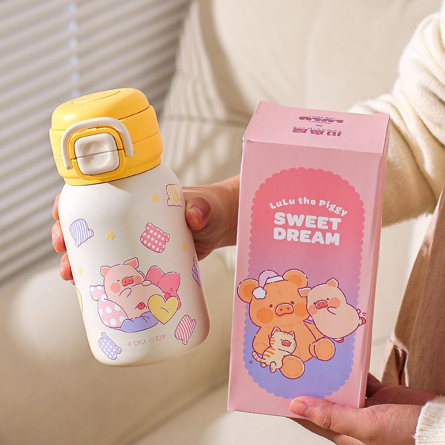 川岛屋LuLu猪联名儿童保温杯女生高颜值礼物可爱水杯便携吸管杯子