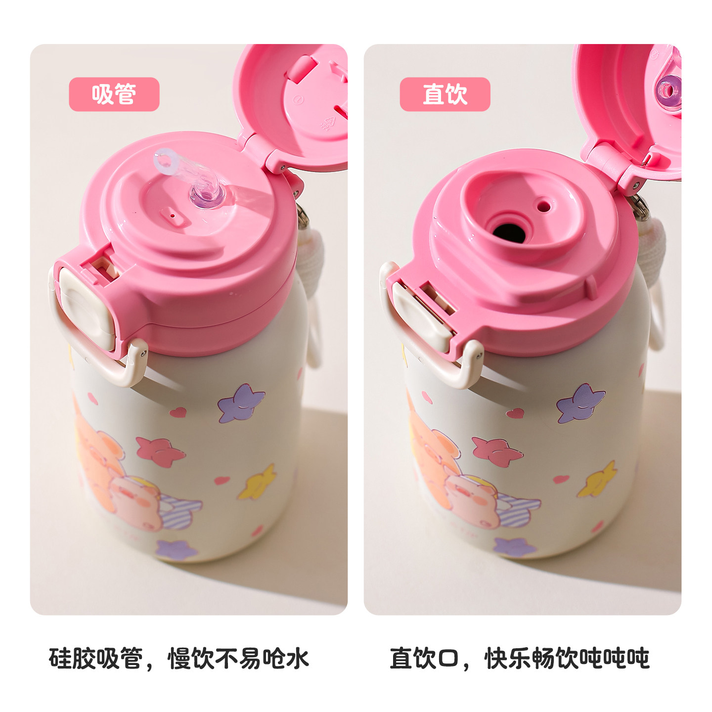 杯具熊轻暖双饮保温杯高颜值情侣水杯纯色简约学生上学吸管杯新款