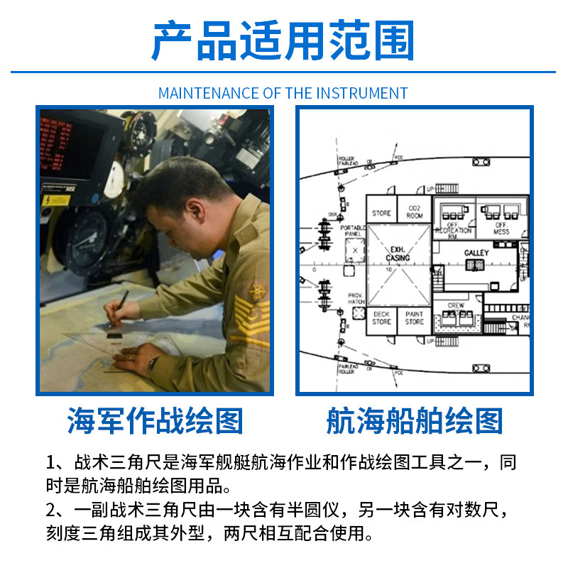 舵科航海战术三角板作战尺350MM绘图尺船用海图三角尺炮兵指挥作