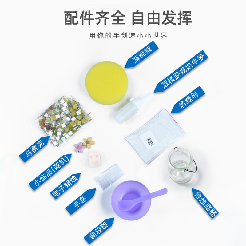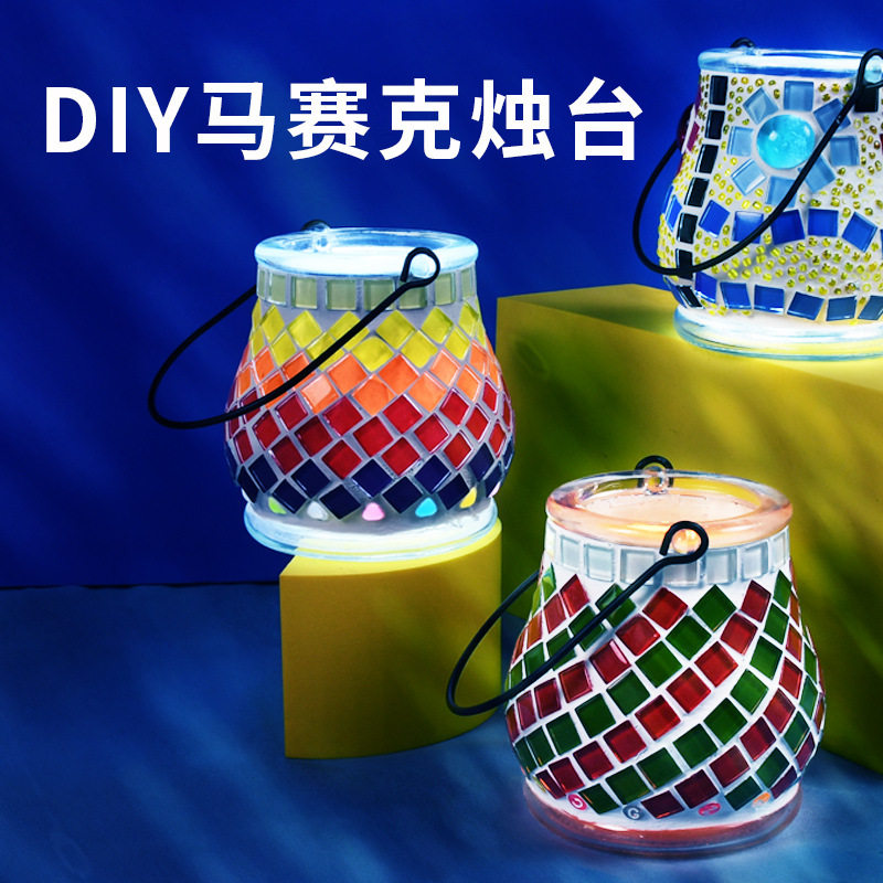 diy马赛克烛台玻璃杯材料包饰品手工制作幼儿礼物亲子活动礼品