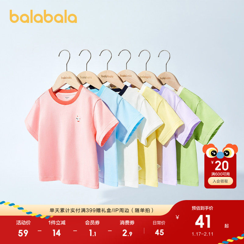巴拉巴拉童装儿童T恤短袖2025春夏装男童纯棉女童上衣T恤撞色潮酷