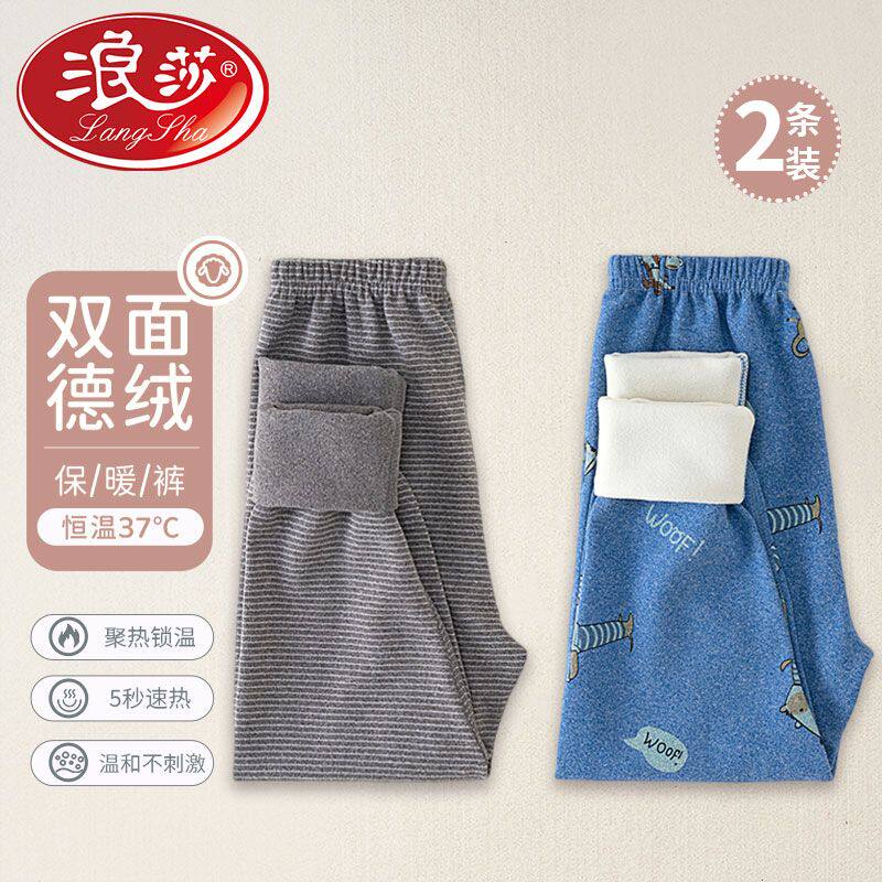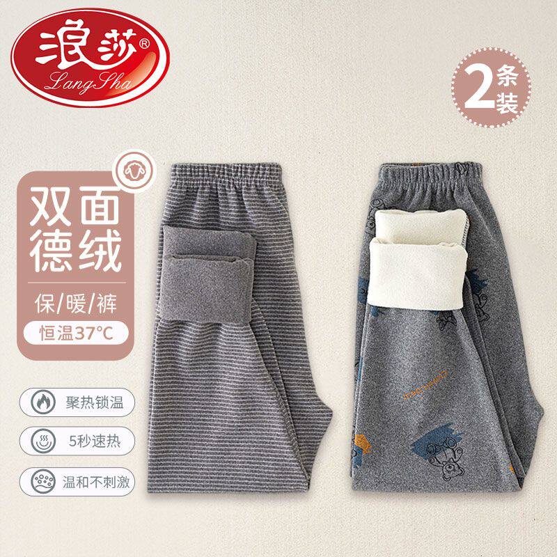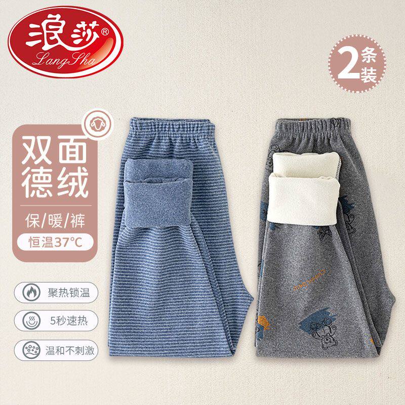 浪莎儿童睡裤保暖裤秋裤德绒男童加绒加厚男孩发热柔软女童秋冬