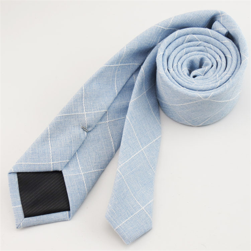 浅蓝色领带男 白格子手打 韩版窄领带配套方巾领结浅色口袋巾