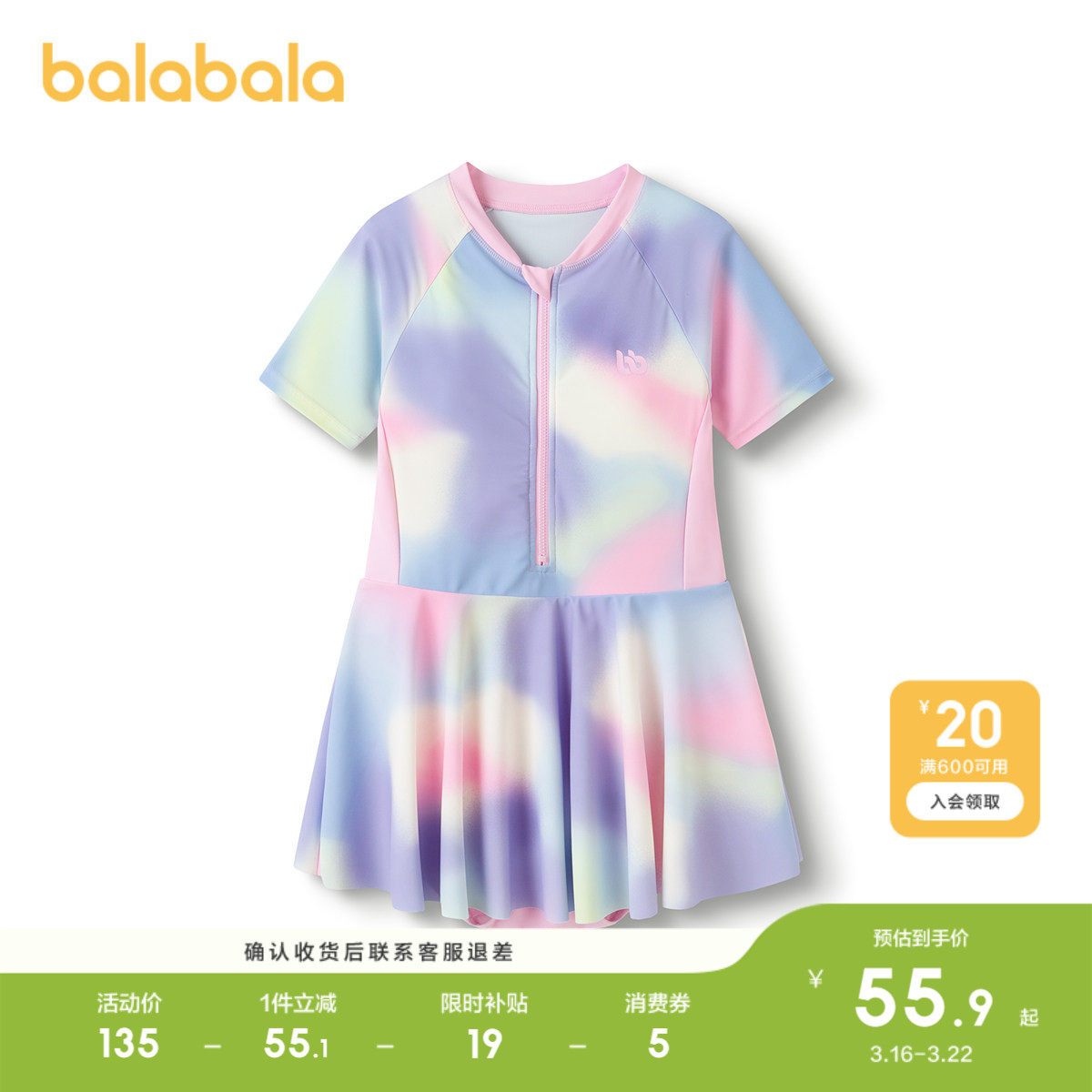 巴拉巴拉女童泳衣儿童泳装中大童防晒连体泳装晕染印花甜美泡温泉