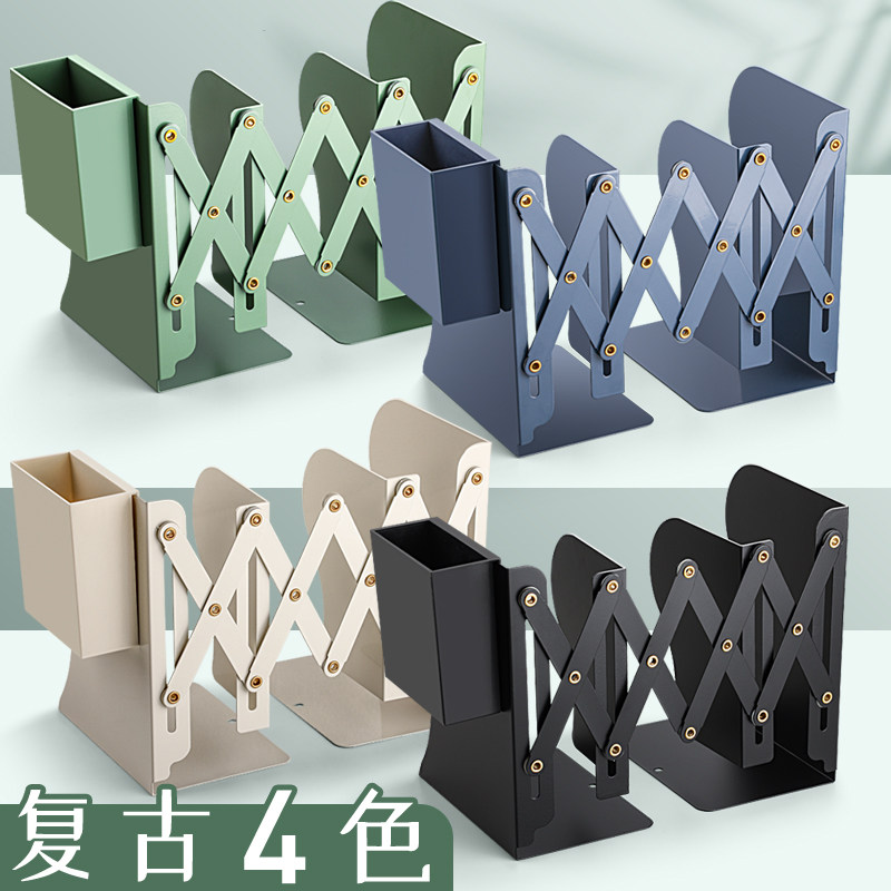 可伸缩书立带笔筒折叠书架一体桌面书本收纳架挡板书夹立架学生用