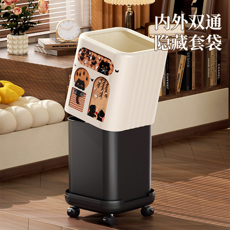 客厅垃圾桶家用2025新款高档翻盖大容量厨房卧室卫生间高颜值纸篓