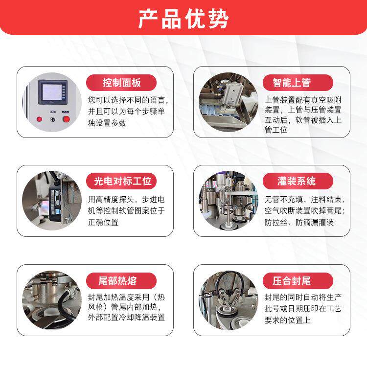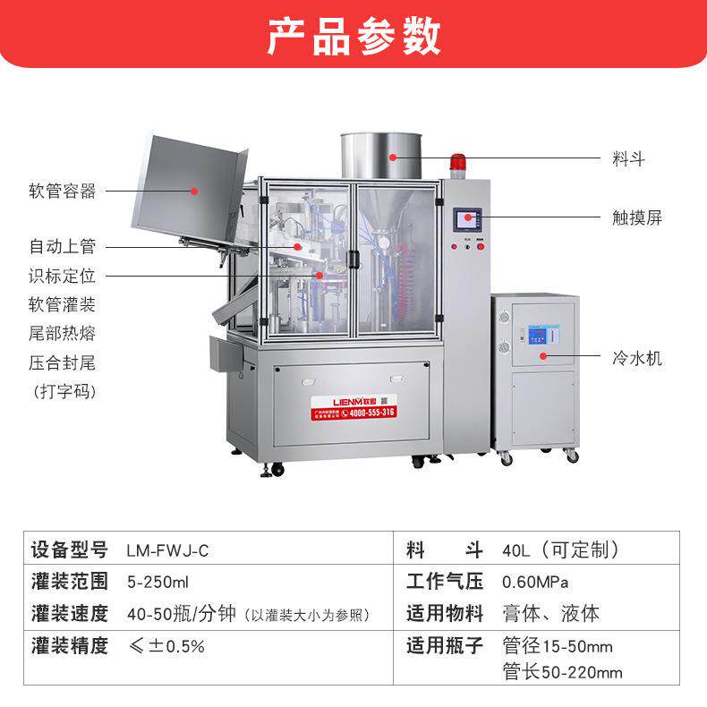 全自动膏体灌装封尾机牙膏洗面奶护肤品软管封尾机