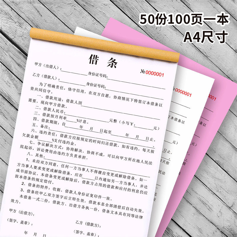 欠条欠款单欠款条欠账单模板借款条收据正规个人借条账单法律效应