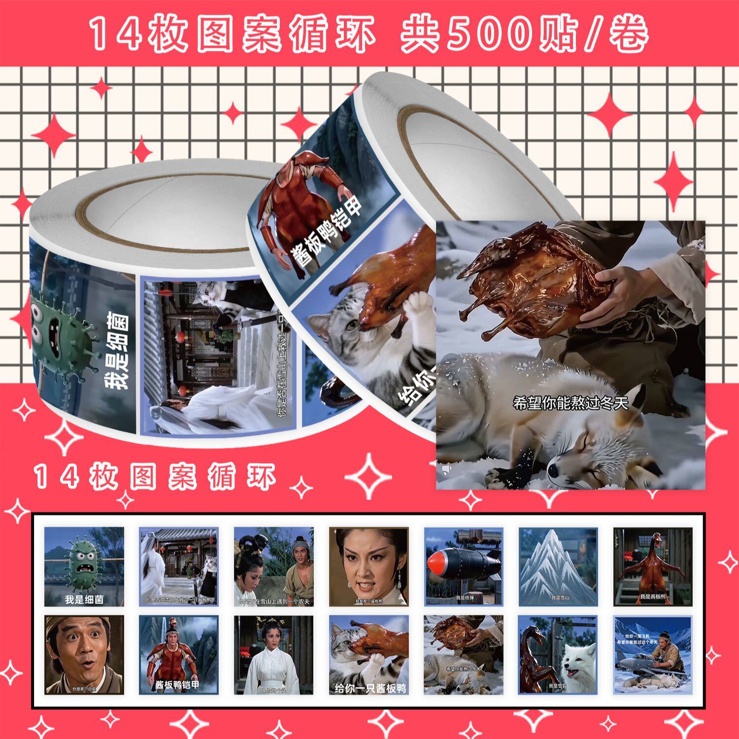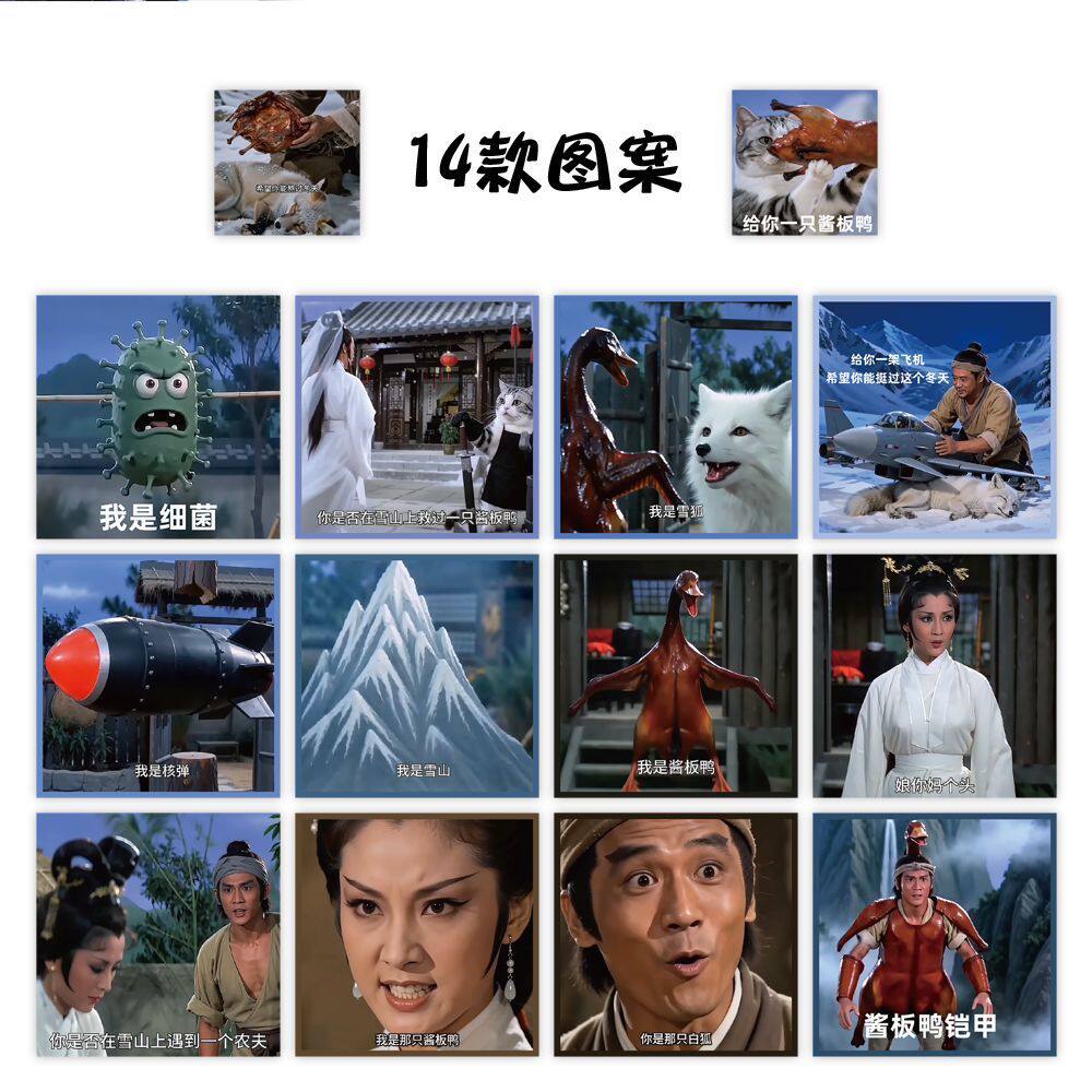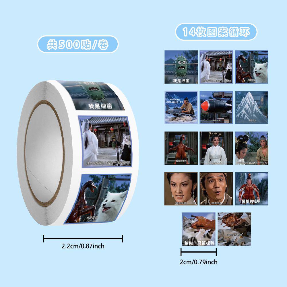 500贴新款创意酱板鸭救狐狸表情包卷卷贴抽象短视频梗图手账贴画