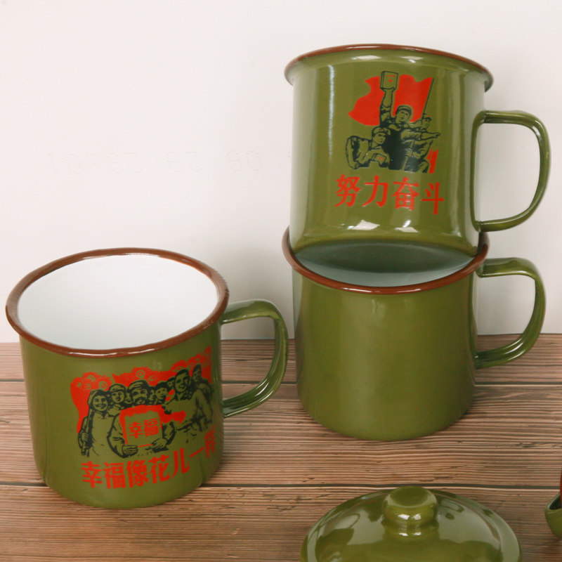 怀旧军绿色搪瓷水杯老式复古语录茶缸子老干部茶杯带盖漱口马克杯