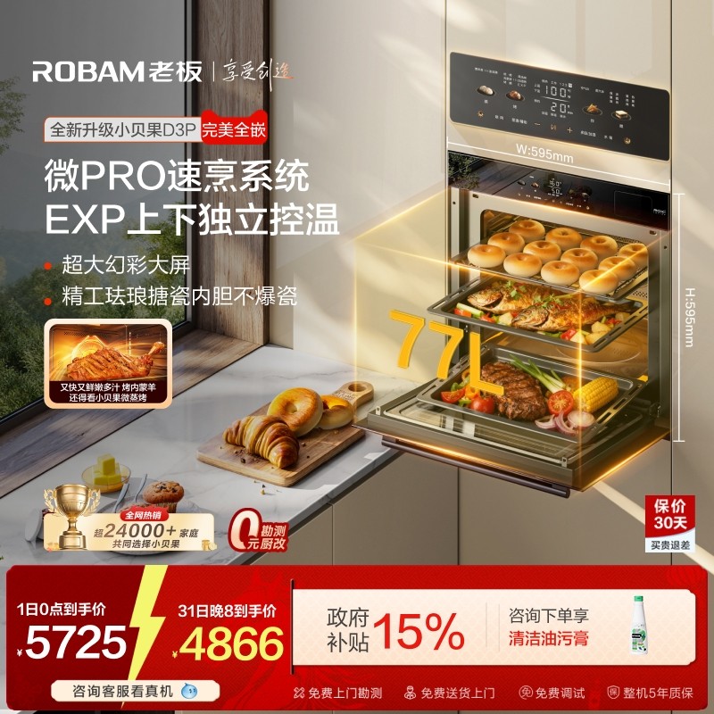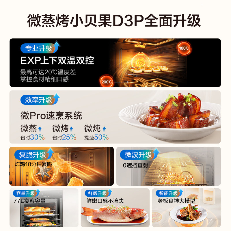 老板新款小贝果D3P微蒸烤炸炖一体机嵌入式家用大容量五合一