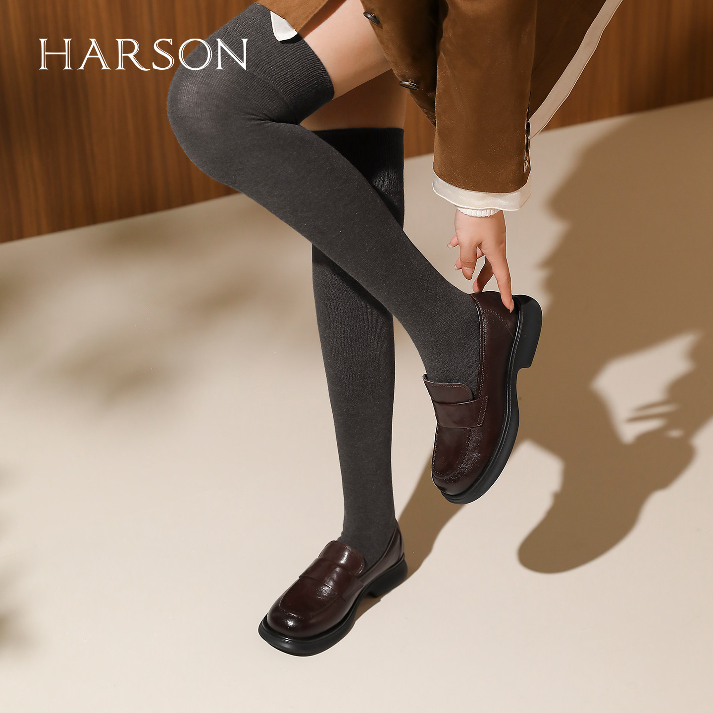 哈森英伦学院风乐福鞋女2025秋季新款厚底增高单鞋HWL250127