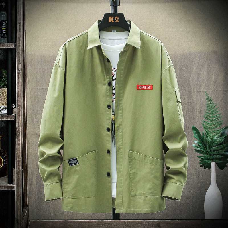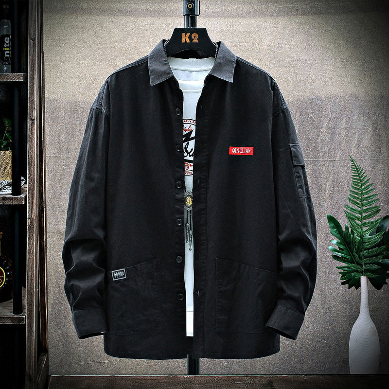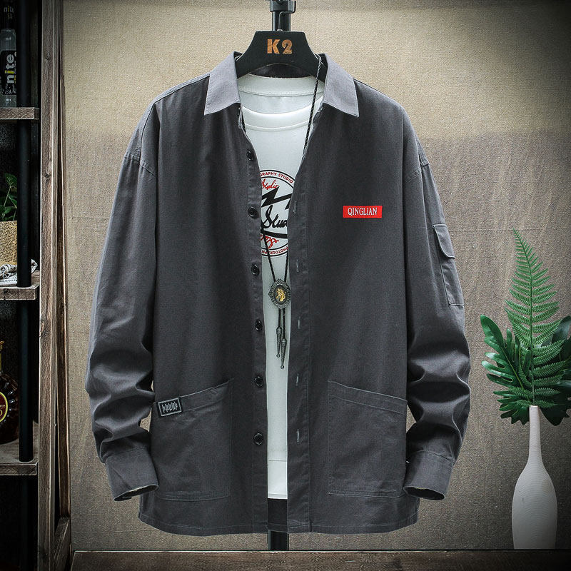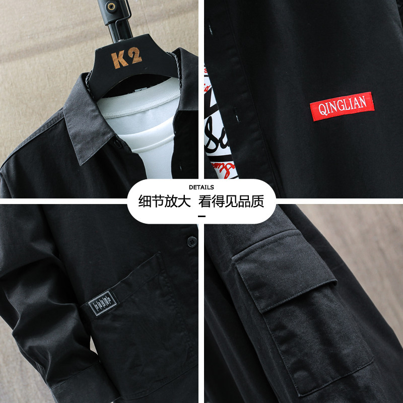 工装长袖衬衫男士薄款春秋季潮流宽松上衣青少年衬衣休闲百搭外套