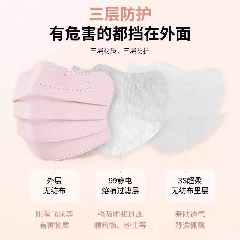 一次性v脸口罩女高颜值蝴蝶莫兰迪护眼角口罩显脸小防护薄款透气