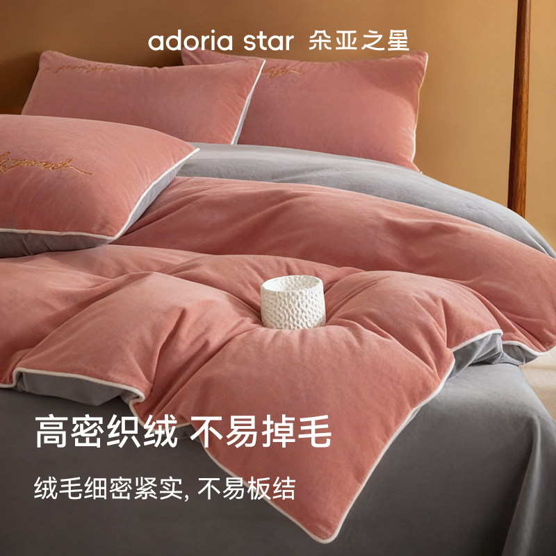 洁丽雅牛奶绒四件套冬季珊瑚绒被套床单加绒毛绒法兰绒床上三件套
