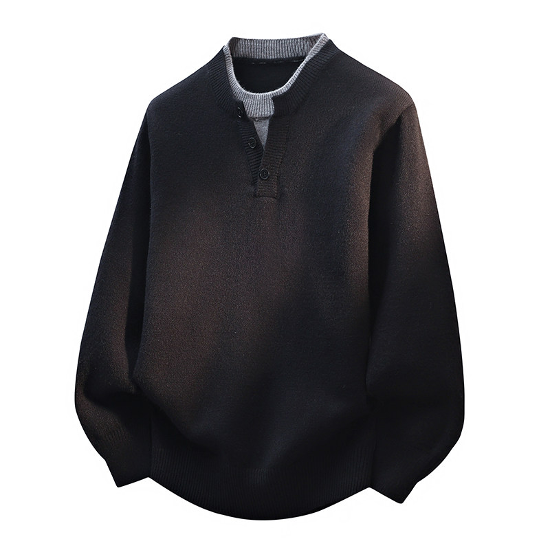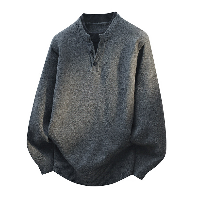 NEVERNEED亨利领套头毛衣男秋冬季美式慵懒风含绵羊毛针织衫外套