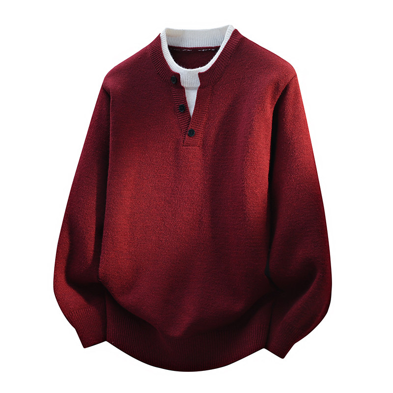 红蜻蜓中年男士毛衣加绒加厚假两件新款保暖内搭爸爸装针织打底衫
