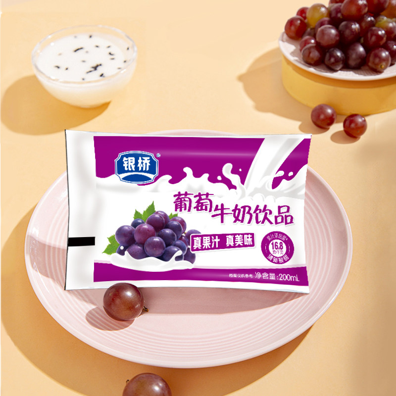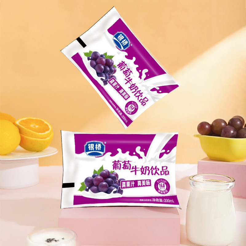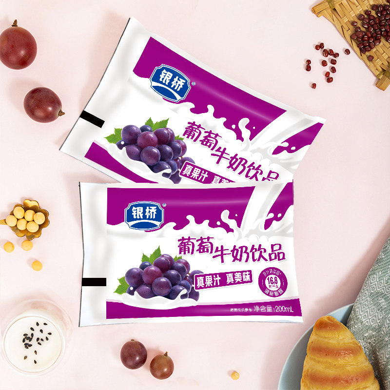 银桥牛奶饮品酸甜草莓牛奶老式袋装陕西安小时候喝的含乳饮料整箱