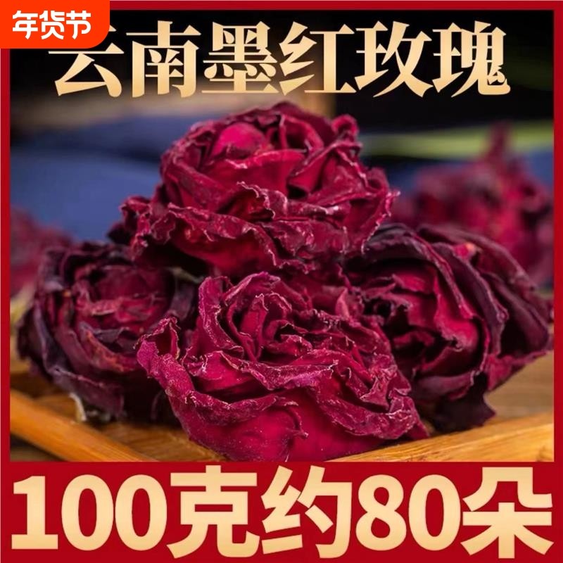 云南墨红玫瑰烤干大朵干花花冠泡茶正宗玫瑰花茶女养生花茶