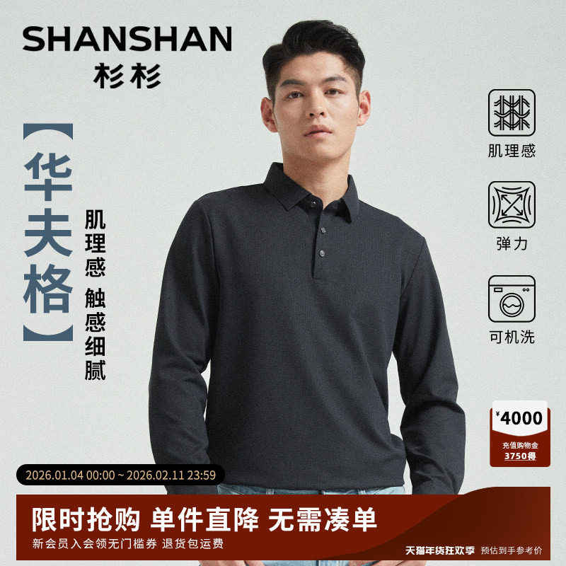 杉杉肌理感长袖男士polo衫2025新款春秋商务高级翻领纯色t恤男款