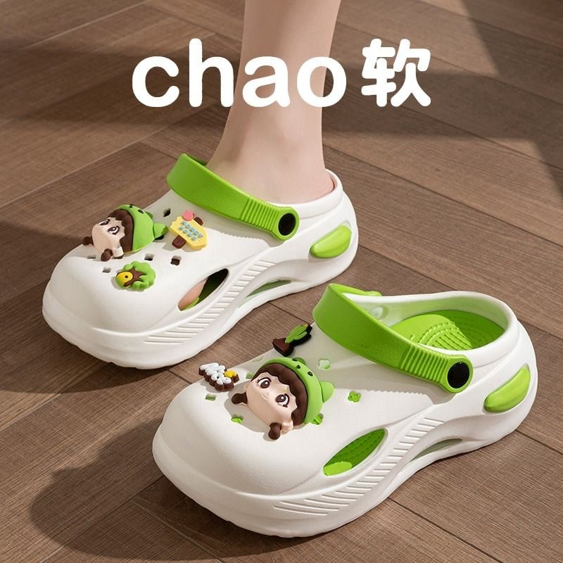 夏季外穿洞洞鞋女款2025新款海边沙滩踩屎感厚底增高防滑包头凉鞋