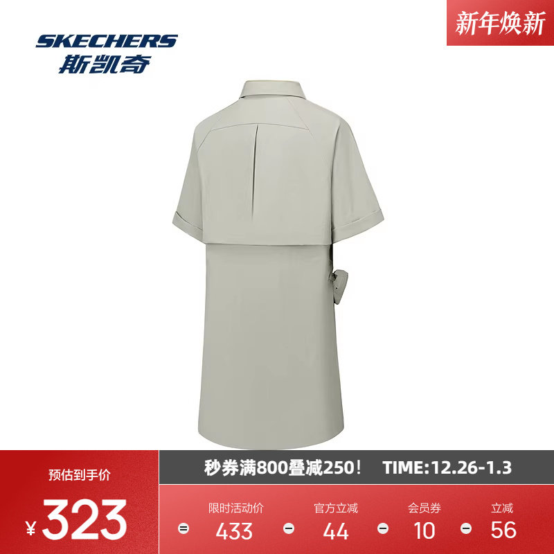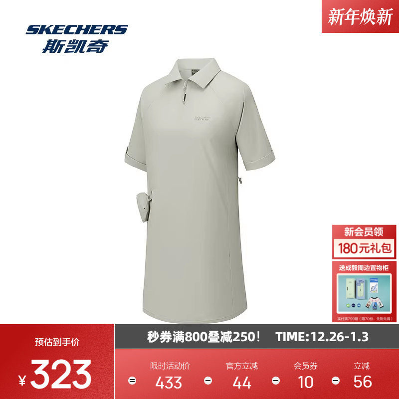 斯凯奇半拉链连衣裙女2025冬季立领凉感时尚舒适户外运动休闲百搭