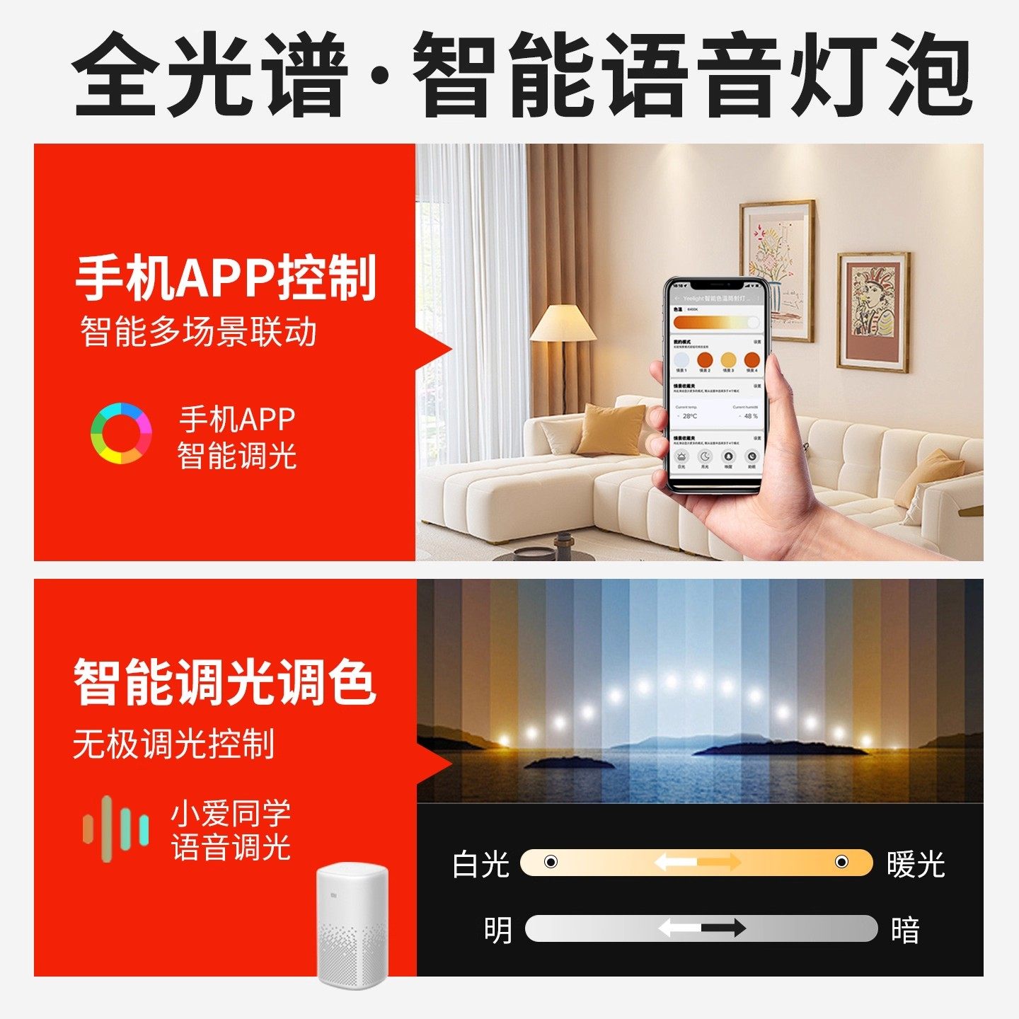 智能led灯泡全光谱护眼e27遥控节能球泡已米家APP控制蓝牙照明