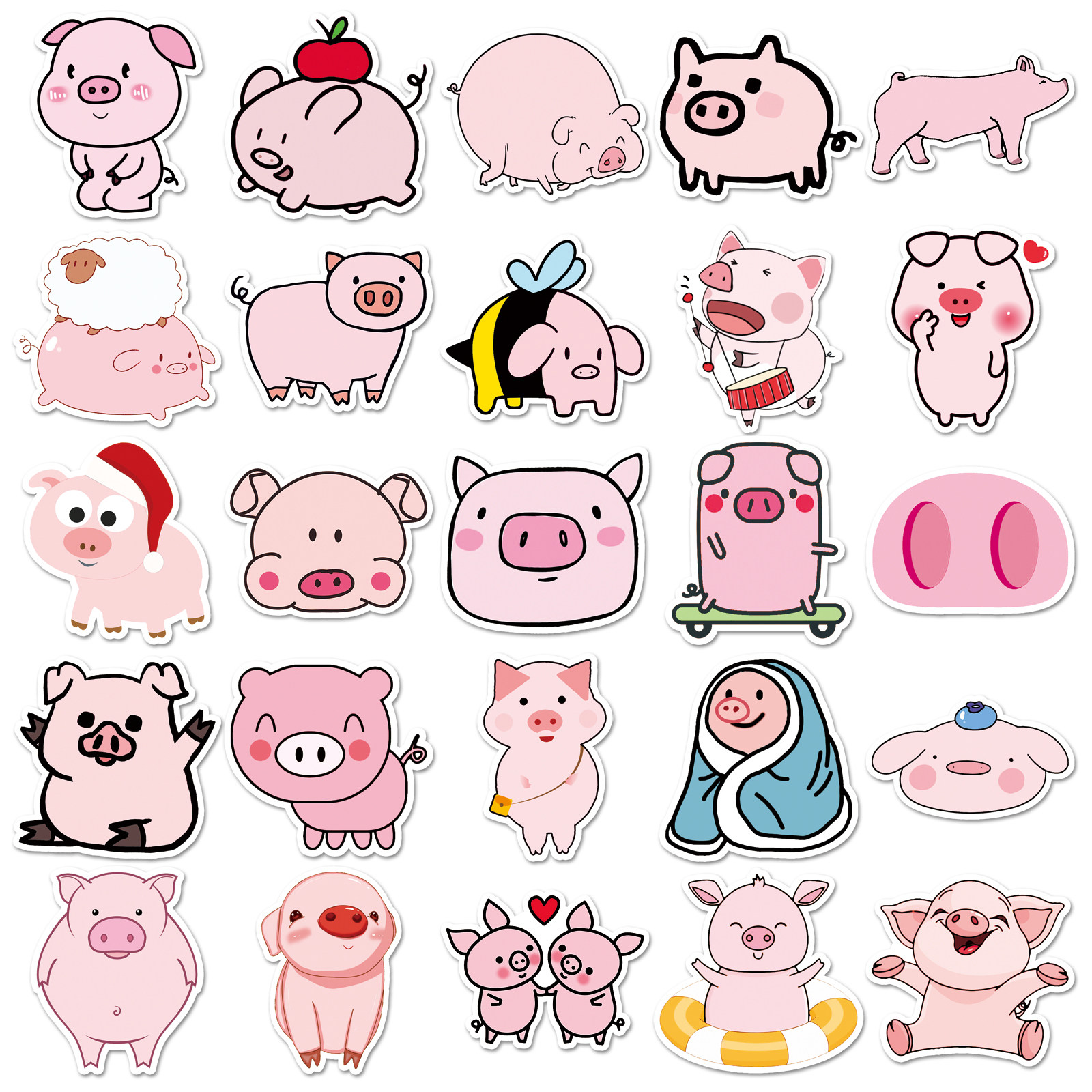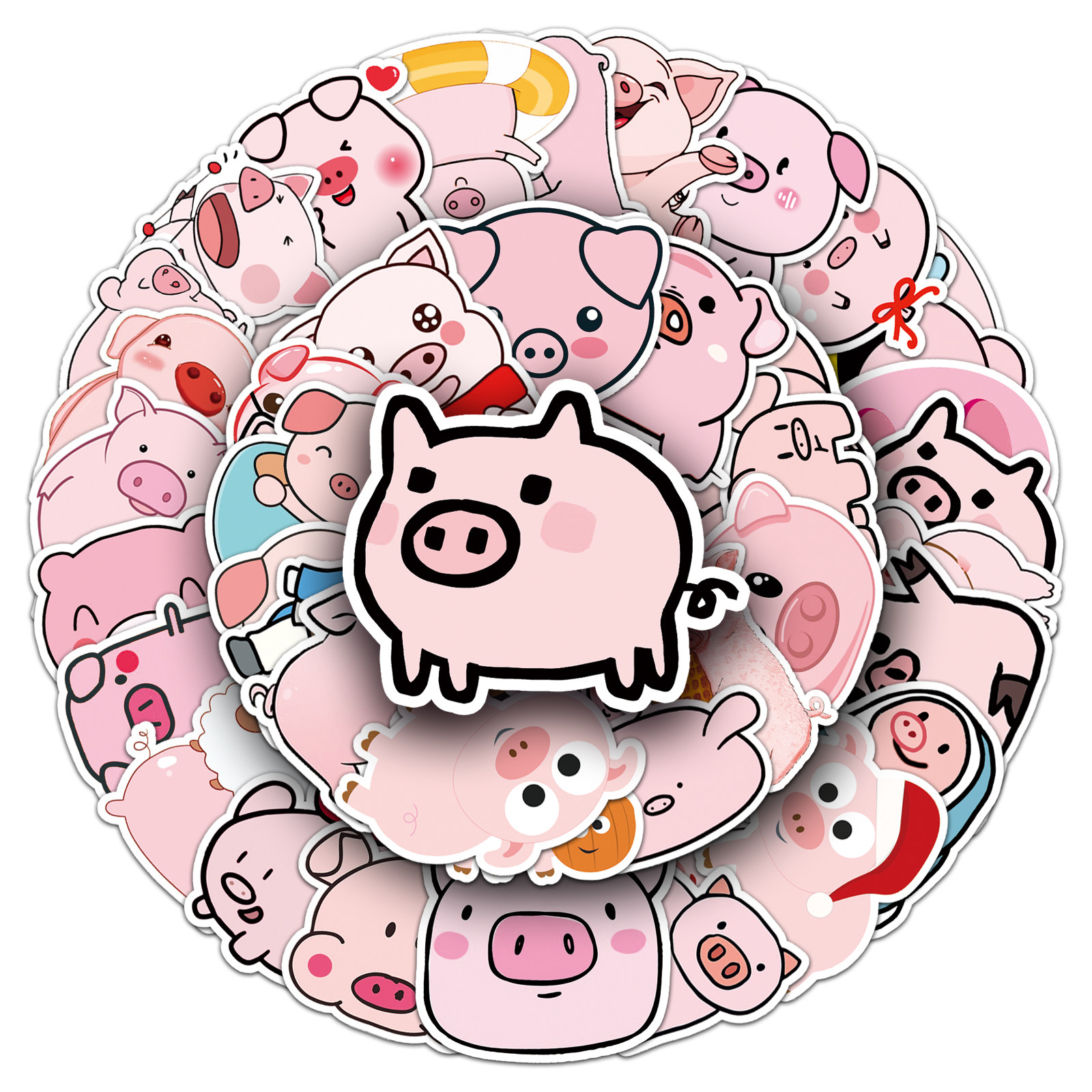 100张原创猪猪贴纸可爱卡通小猪粉色少女心蠢萌图案装饰贴画冰箱头盔拉杆箱滑板车电脑耳机壳充电宝防水贴纸