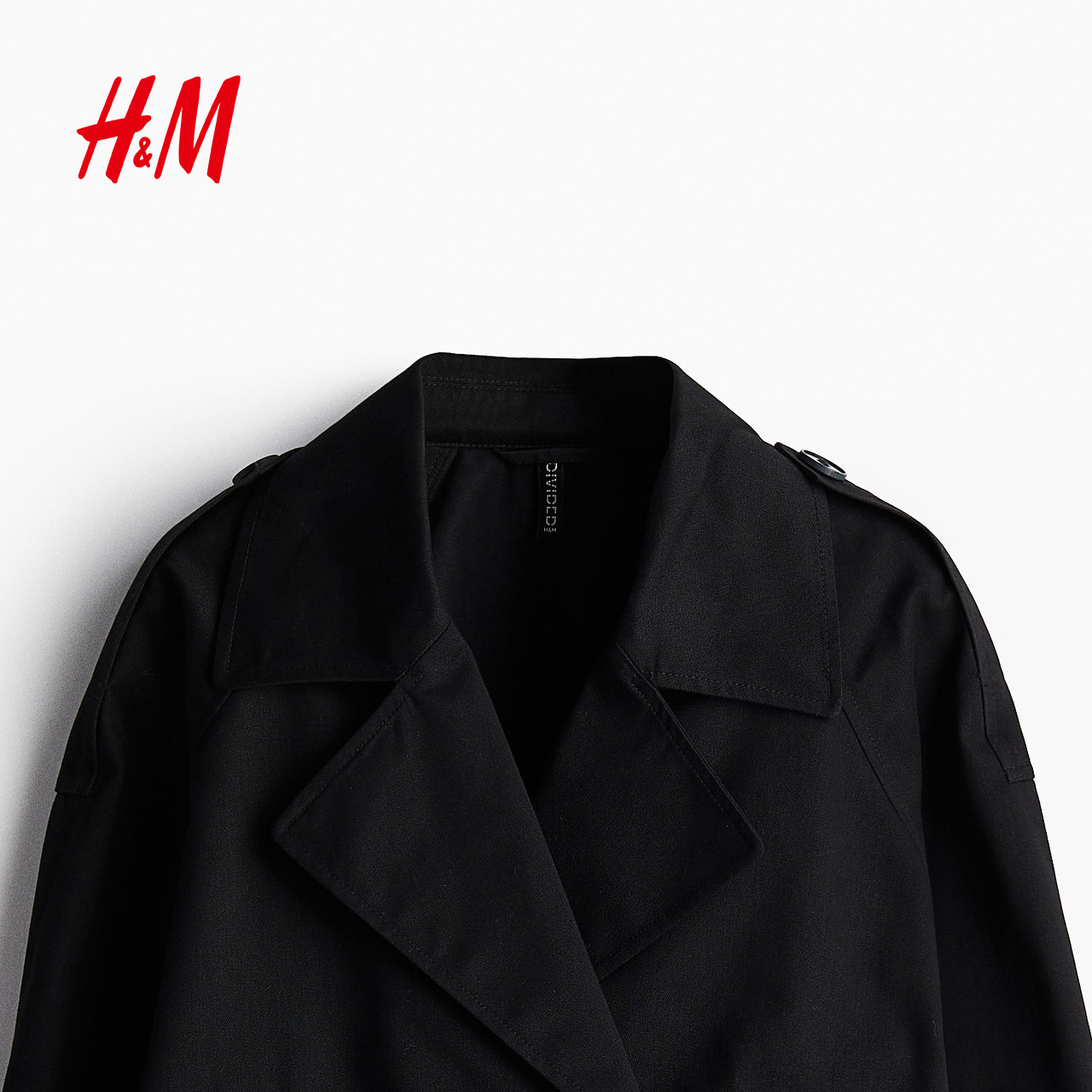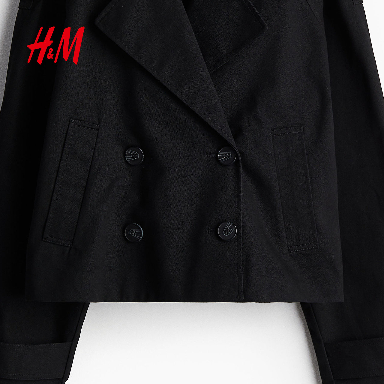 HM女装短外套冬季设计感廓形休闲双排扣大廓形长袖短风衣1250175