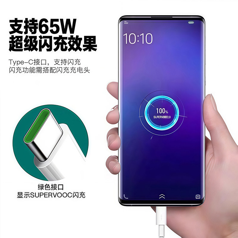 适用opporeno5充电线Reno5pro数据线65W超级闪充出极原装Reno5k手机充电线