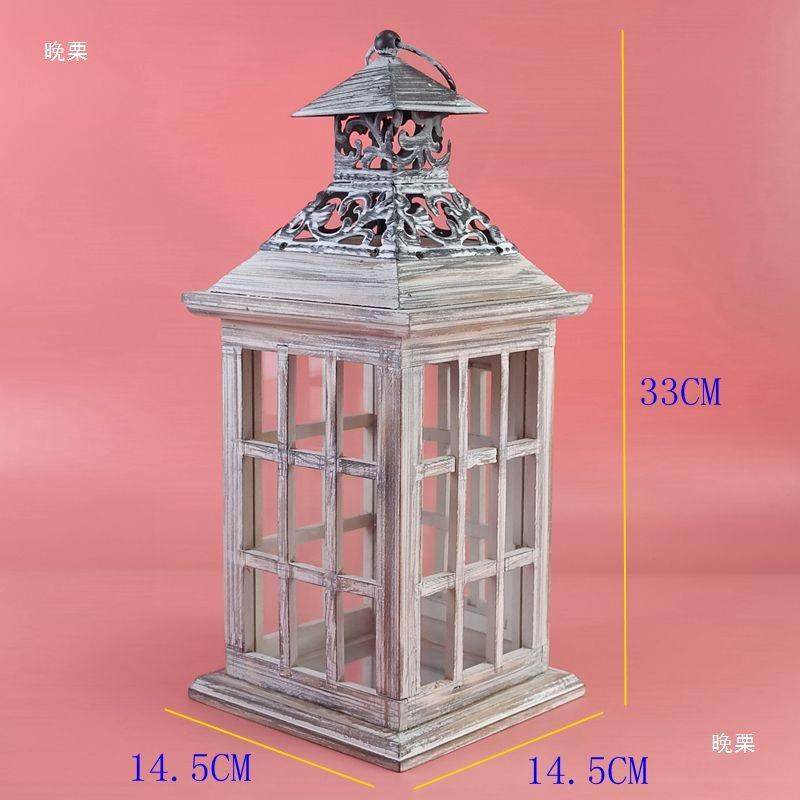 美式复古烛台做旧实木风灯户外防风蜡烛灯罩烛台铁艺玻璃烛台摆件