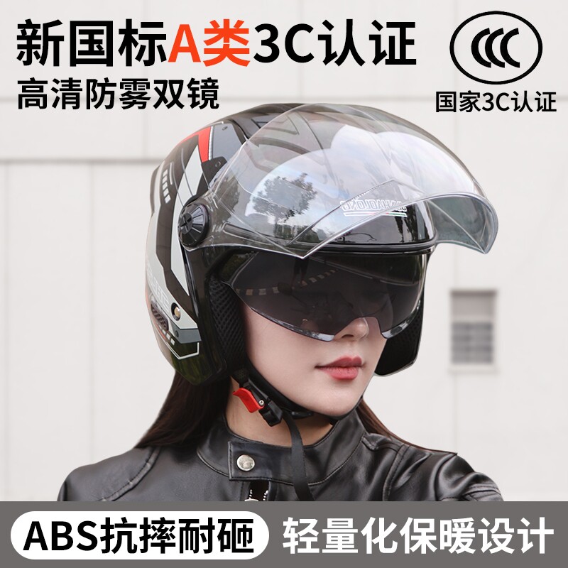 3C认证电动摩托车头盔四季通用安全帽冬季四分之三半盔镜片防雾